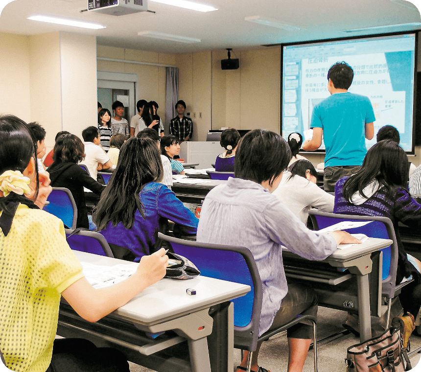福山大学では、各学部のカリキュラムの中で、アクティブ・ラーニングを主体とした実践的な学びを多く取り入れています。