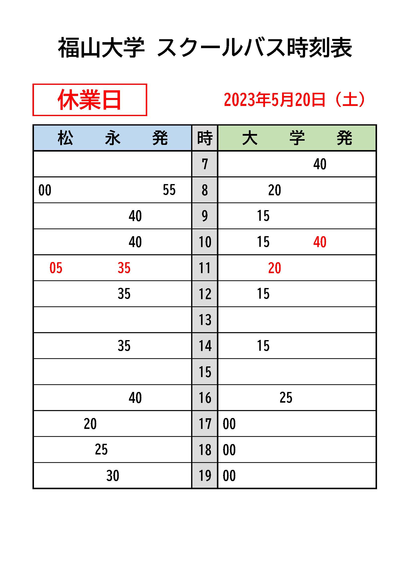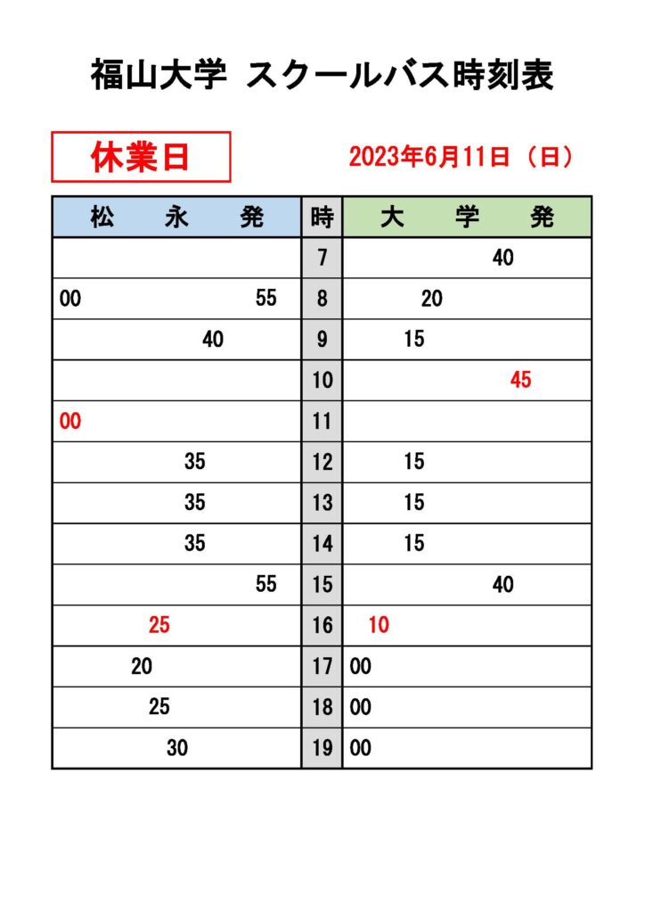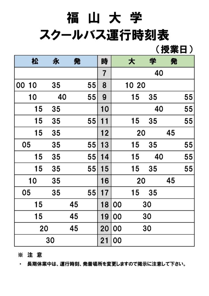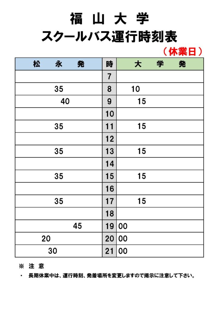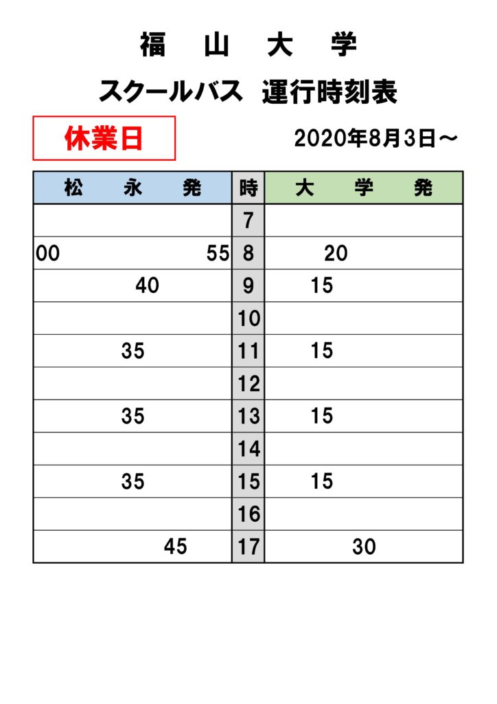 ・【 冬季休業中 時刻表 】