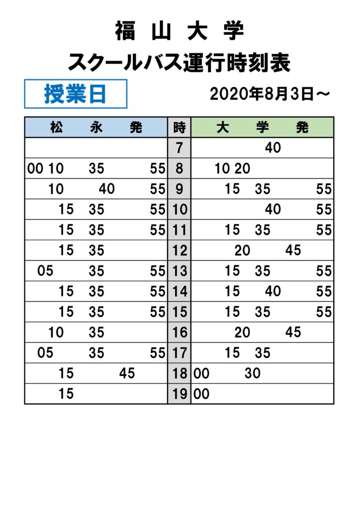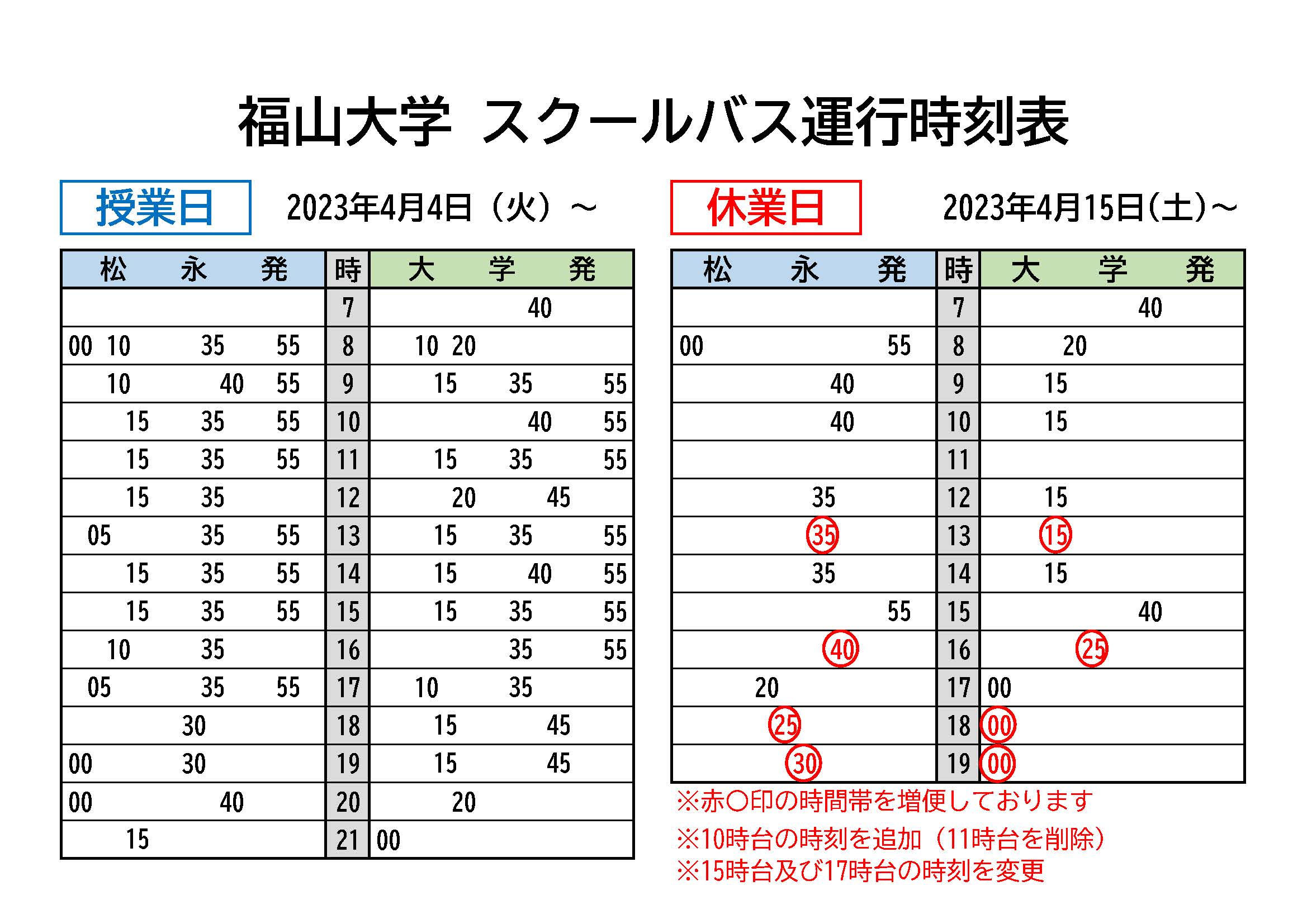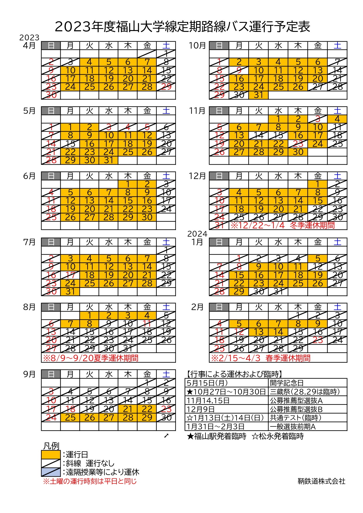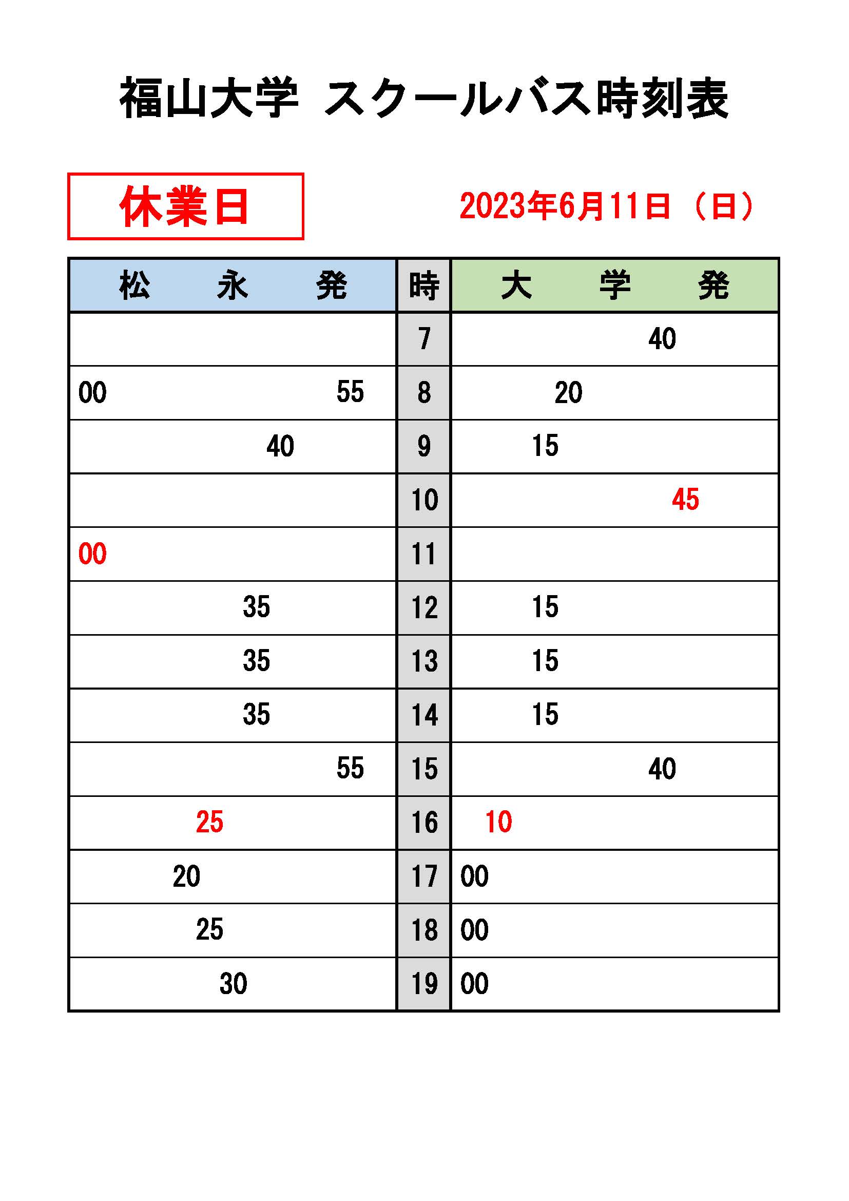 ・【 冬季休業中 時刻表 】
