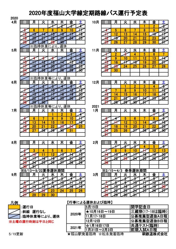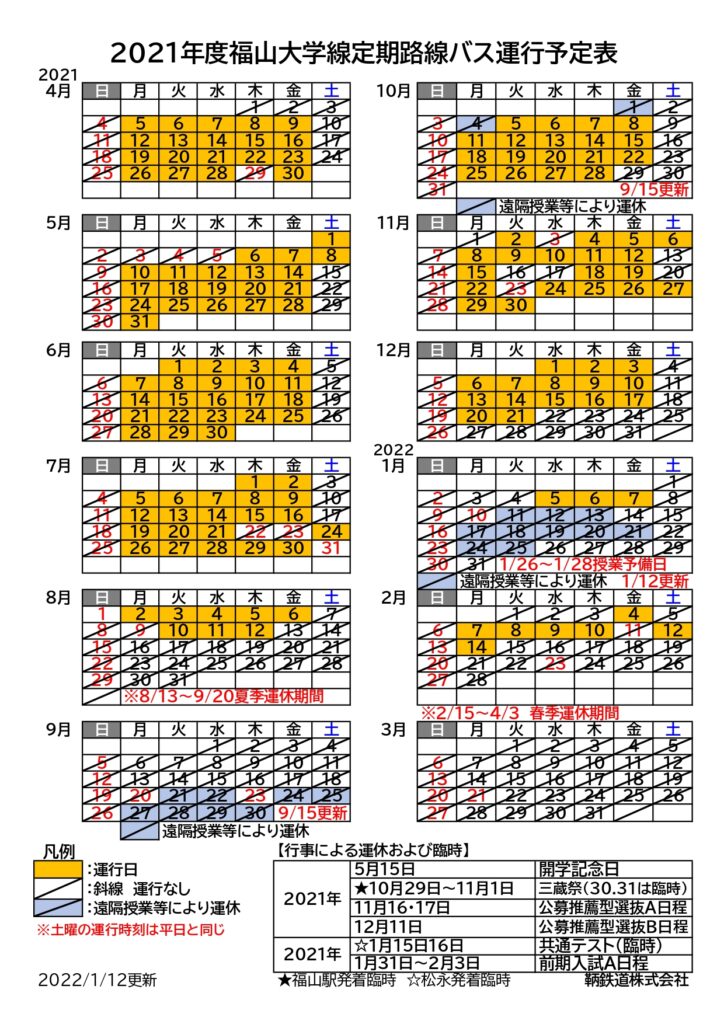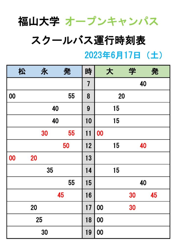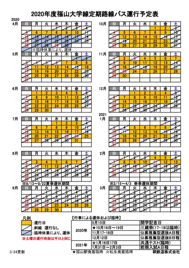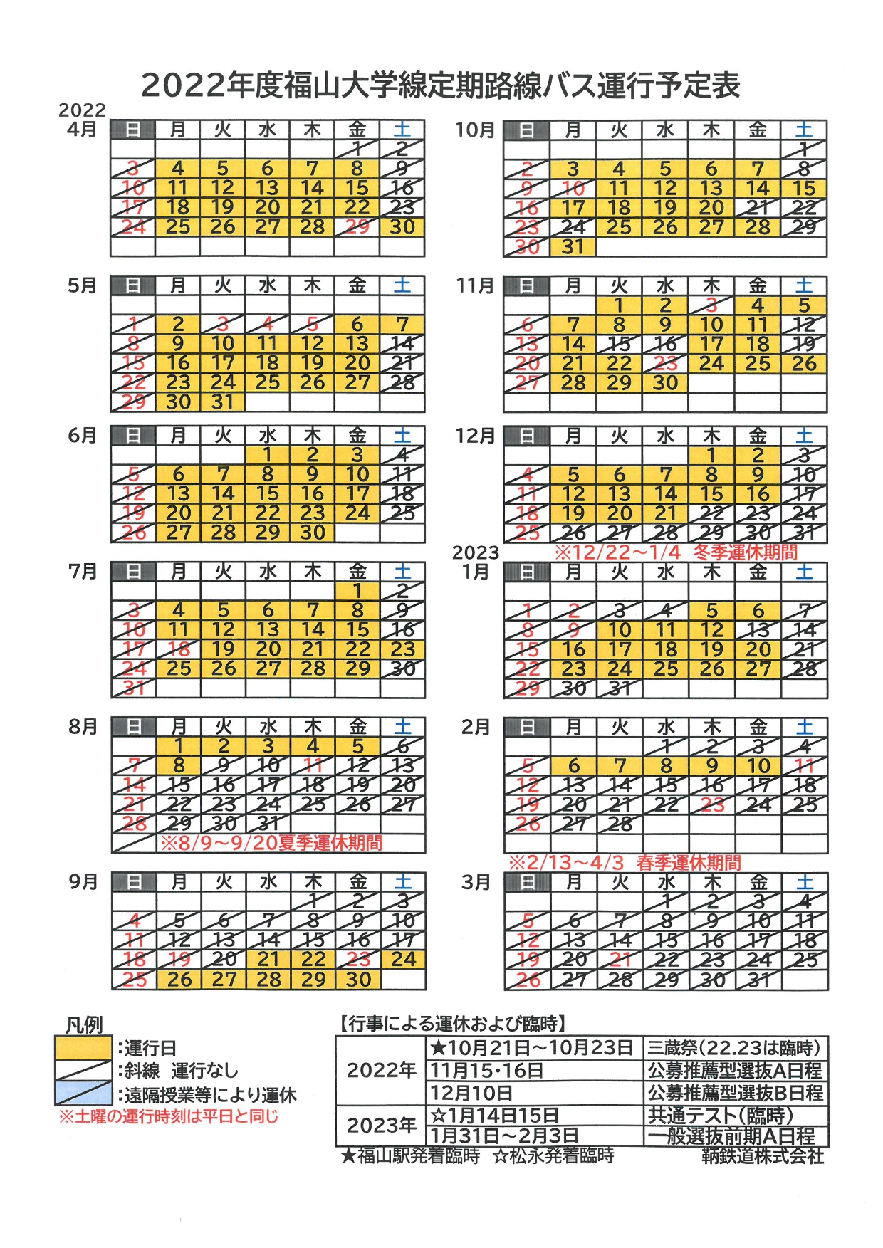 ・【 冬季休業中 時刻表 】